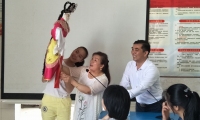 (非物质文化遗产知识讲座现场) (学生体验操作木偶) 娄底新闻网讯(通讯员 谢浩)6月9日,娄星区蛇形山镇文广体站在蛇形中学开展了非物质文化遗产知识进校园讲座活动...