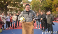 栏目:科教文卫 2021-11-12 21:50(娄底五中校长肖细宏(右)和党委书记李兴江(左)在比赛现场) (“瞎子敲锣”) (在“袋鼠运瓜”项目中,选手们赛出了水平赛出了风采) (活...